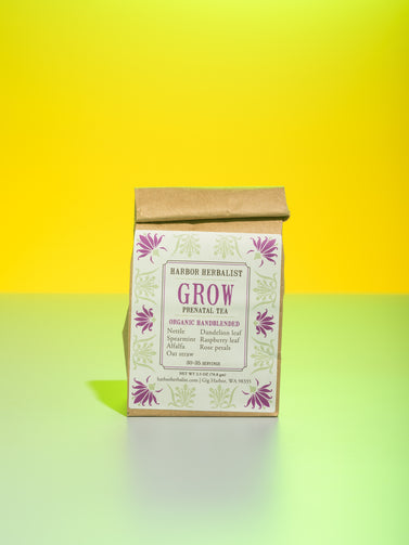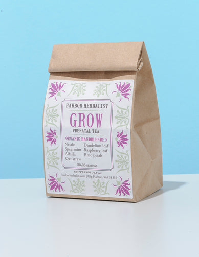 Tea of choice for women who are pregnant or plan to become pregnant. Grow is rich in vitamins and minerals, essential for a growing baby and mother. Raspberry leaf strengthens tissue tone in the female reproductive system.