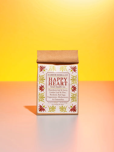 Happy Heart supports cardiovascular health and helps soothe emotional heartache. Stress and loss impact the heart, not just the mind. This blend is delicious and specially designed for those who need a little extra cardiovascular support.