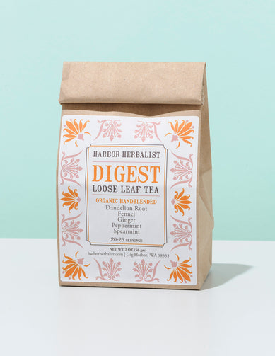 Drinking this absolutely delicious digestive tea before or after a meal can strengthen digestion and help relieve digestive upset such as gas and bloating. A little bit spicy and a little bit sweet, Digest has a full bodied flavor with rich aromatics. Because most of us are touched by daily stress and irregular eating habits, drinking digest tea can substantially improve digestion and nutrient assimilation.