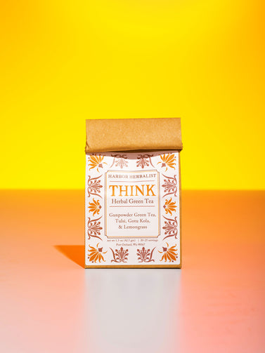 A bright energizing blend of chinese gunpowder green tea and aromatic herbs that support stress relief and provide a mental boost. Lemongrass with her sweet lemon breath pairs perfectly with smooth gunpowder green tea. Tulsi adds a touch of fragrant basil, while gotu kola has a fresh, ever so slight, bite. Drink daily for a mental boost!